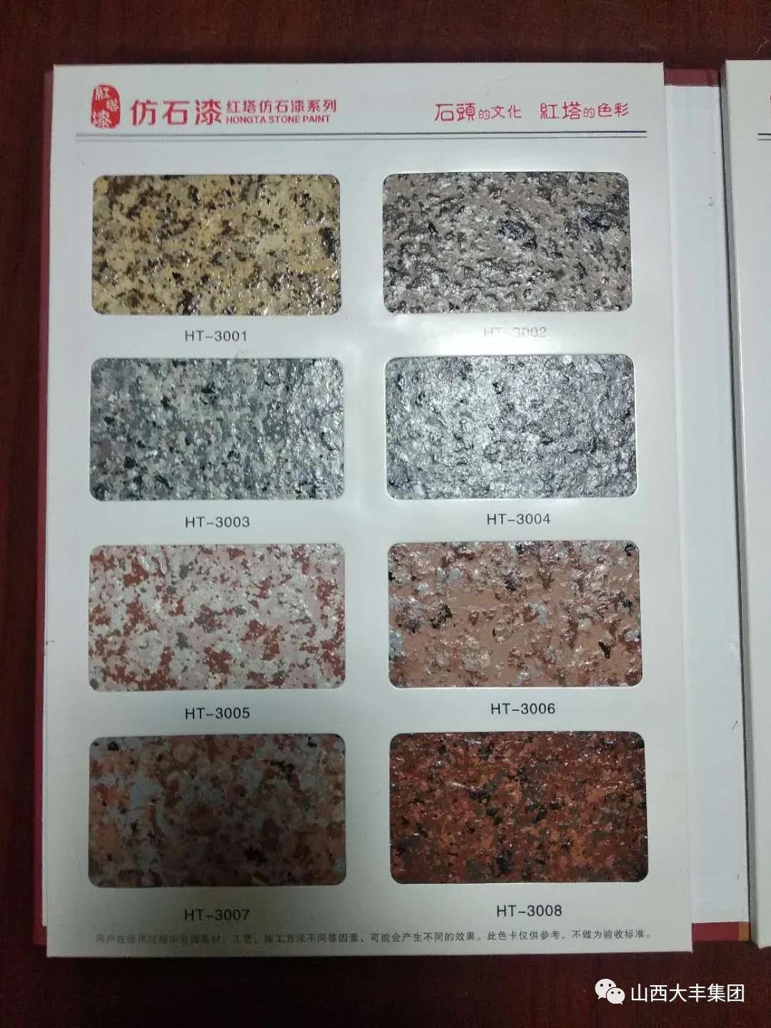 1、真石漆:主要采用各種顏色的天然石粉配制而成。