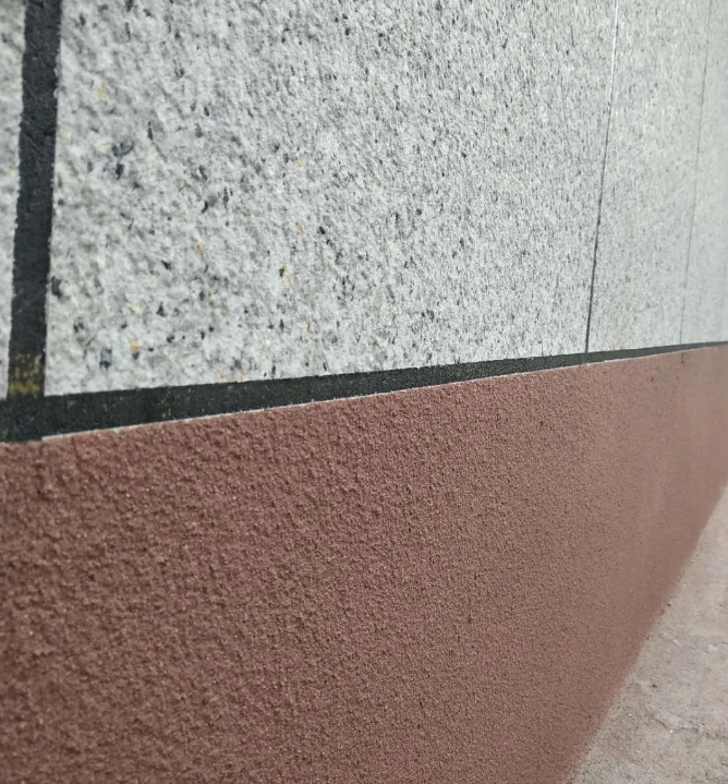水包水涂料多用于仿制平面花崗巖石材,但如果需要仿制荔枝面石材,施工時(shí)需要先噴涂一道真石漆或質(zhì)感涂料作為造型層,再進(jìn)行撒點(diǎn)。